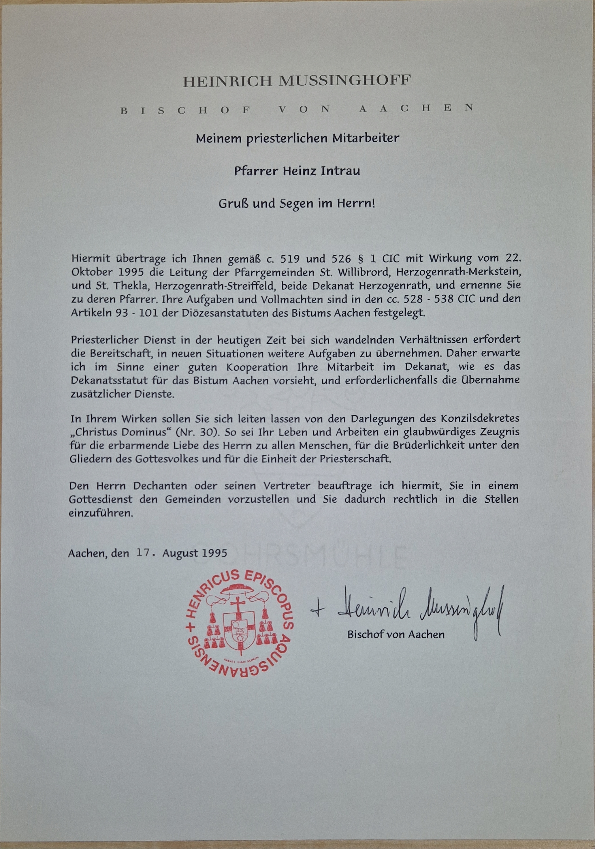In diesen Tagen jähren sich meine Jahre als Pastor in Merkstein zum 30. Mal. Drei Jahrzehnte. Wenn ich das laut ausspreche, klingt es fast unwirklich. Hätte man mir damals gesagt: „Merkstein wird einmal deine neue Heimat werden“, ich hätte es wohl nicht geglaubt.
